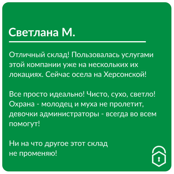 Спасибо за ваши отзывы! Нам очень важно получать обратную связь и видеть, что вы довольны условиями хранения.