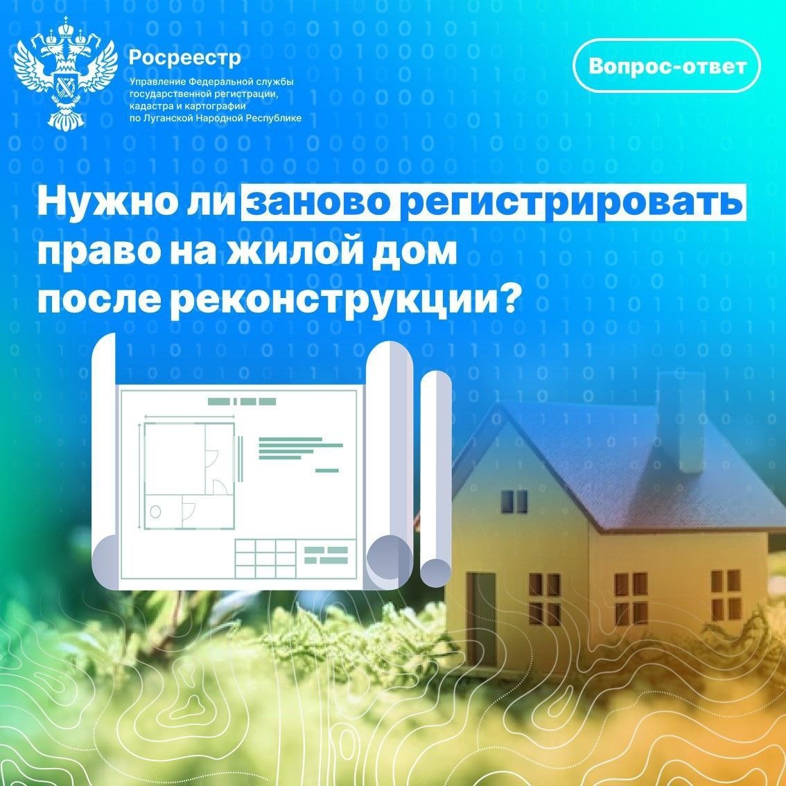 📎Нужно ли заново регистрировать право на жилой дом после реконструкции? 🤩Управление Росреестра по ЛНР информирует граждан о важности регистрации объектов недвижимости после проведения реконструкции. 🤩Реконструкция — это изменение параметров объекта капитального строительства и его частей. Это может включать изменение высоты, количества этажей, площади или объема, а также надстройку, перестройку или расширение объекта. 🤩Важно отметить, что в случае проведения реконструкции повторная регистрация прав на дом не требуется. Однако внесение информации о произведенной реконструкции в Единый государственный реестр недвижимости (ЕГРН) является обязательным. 🤩До 1 марта 2031 года собственник реконструированного жилого дома может воспользоваться упрощенным порядком внесения изменений в рамках «дачной амнистии». Для этого ему необходимо представить в орган регистрации заявление и технический план, подготовленный кадастровым инженером на основании декларации об объекте недвижимости, состав