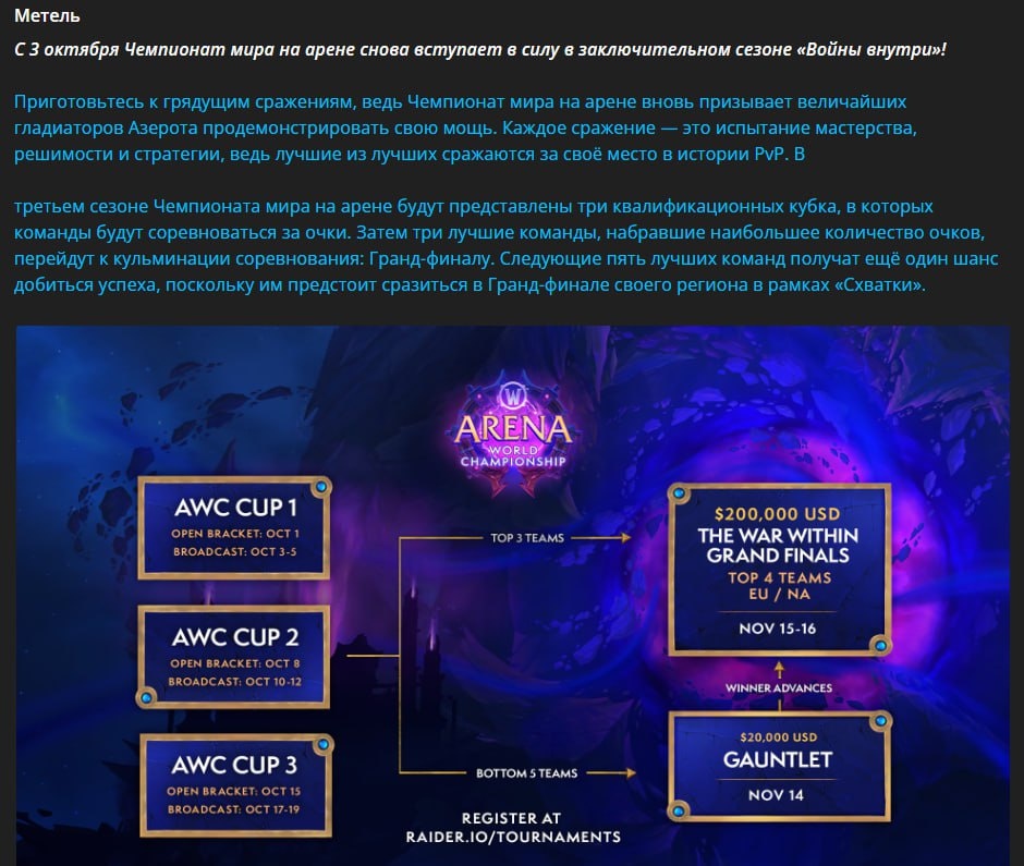 Чемпионат мира на арене возвращается 3 октября! На твиче и ютубе оф каналов WoW будут трансляции