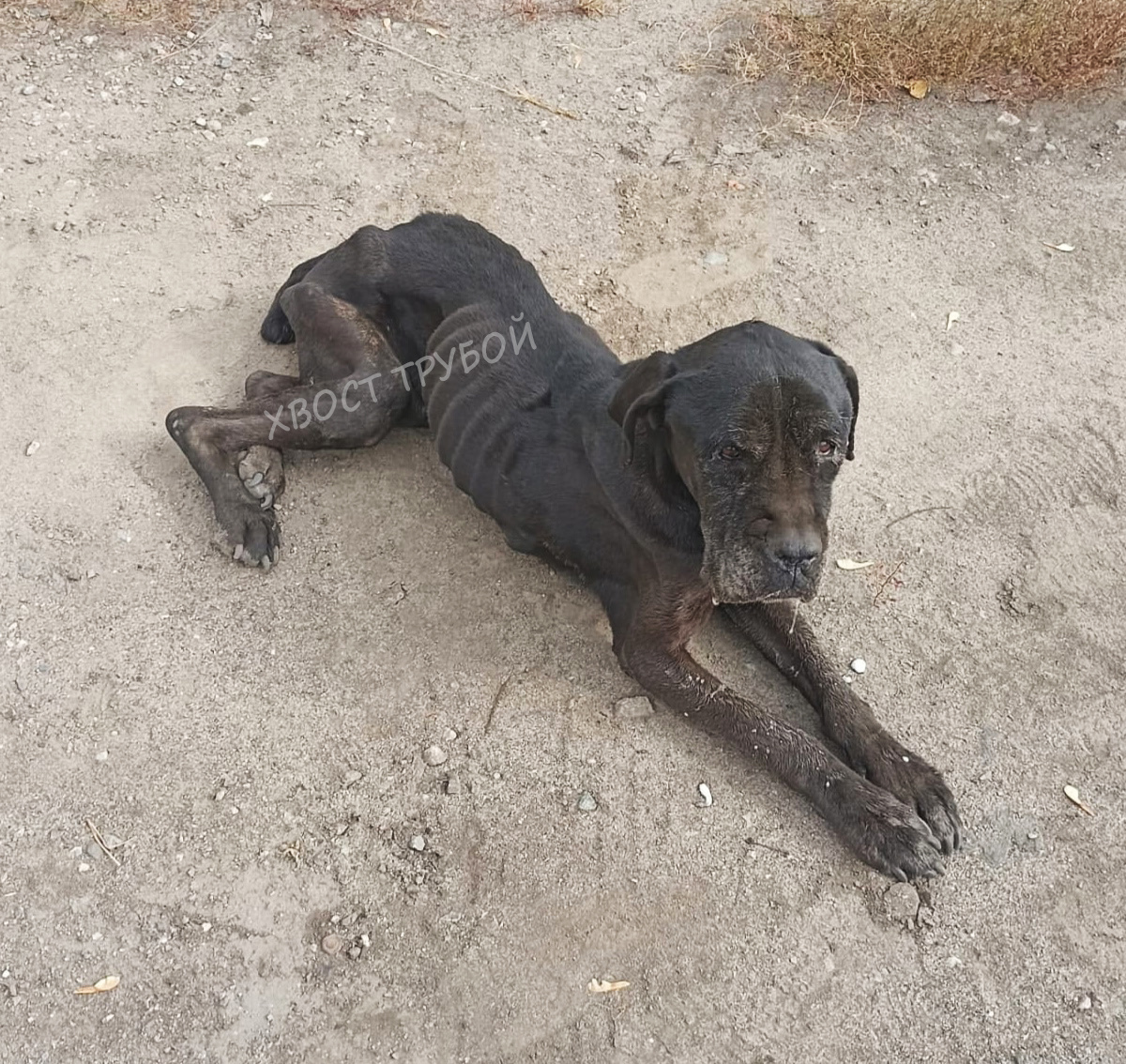 Исхудавшая до предела кане-корсо слонялась по улице в надежде на помощь.