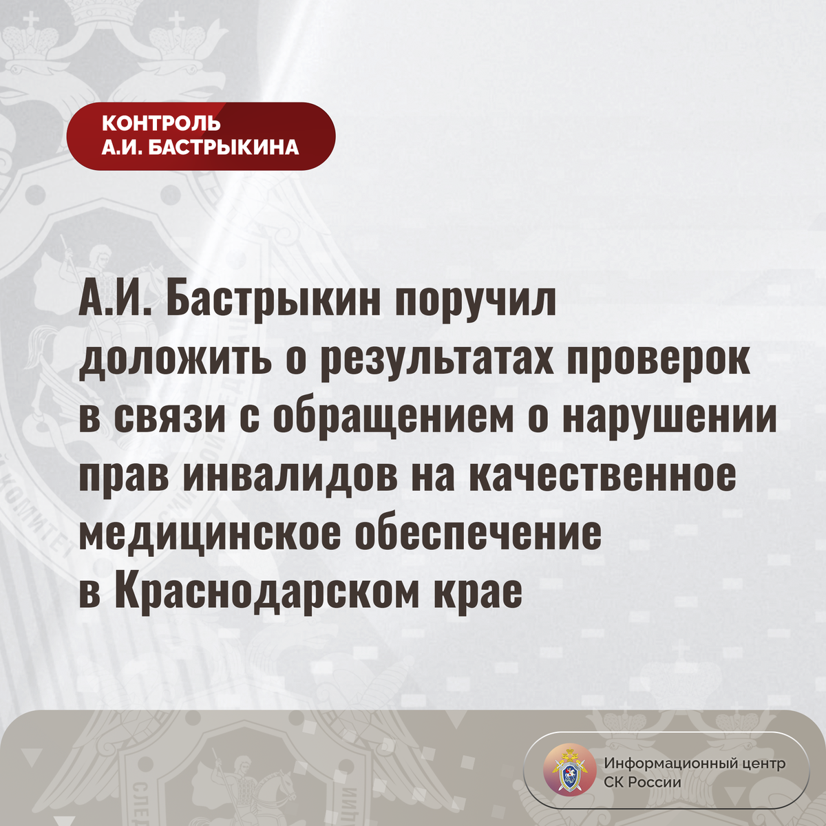 А.И. Бастрыкин поручил доложить о результатах проверок в связи с обращением о нарушении прав инвалидов на качественное медицинское обеспечение в Краснодарском крае