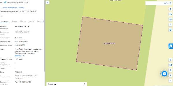 Название: Земельный участок с кадастровым номером 51:19:0010120:212 площадь 1070 по адресу Российская Федерация, Мурманская область