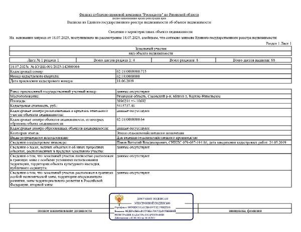 Название: земельный участок с кадастровым номером 62:18:0000000:716, площадью 1758786 кв.м, расположенный по адресу: Рязанская область