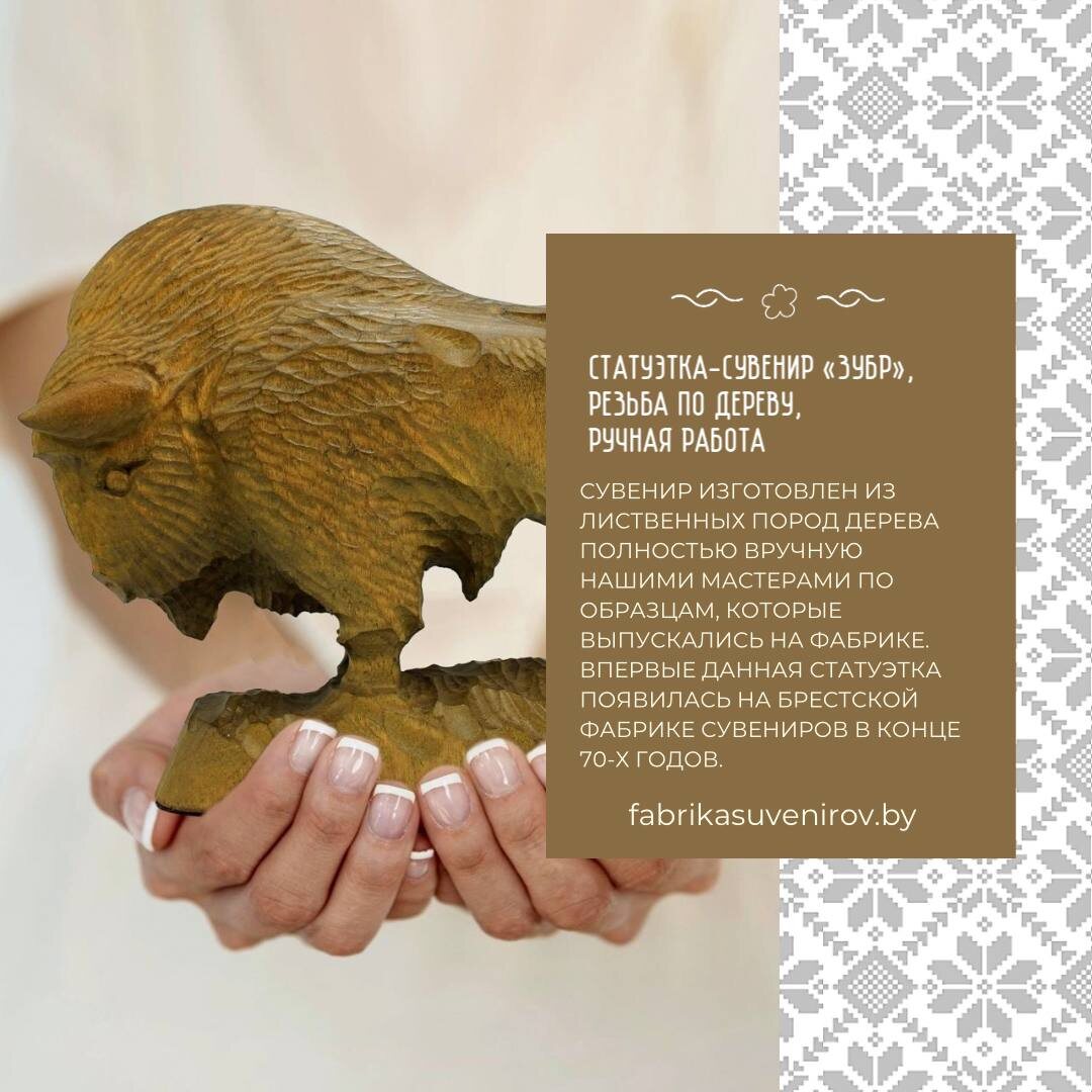 🦬 Легенда, созданная вручную! ⠀ Представляем нашу культовую статуэтку-сувенир «Зубр» - символ силы, стойкости и беларуского наследия. Каждый зубр вырезан вручную из ценных лиственных пород дерева нашими мастерами. Высота - 15 см, цвет - темно-коричневый, покрыт морилкой и специальной мастикой для долговечной красоты. Эта фигурка впервые появилась на Брестской фабрике сувениров ещё в конце 70-х годов и по сей день остаётся одним из самых любимых изделий! ⠀ Такой сувенир станет: ✔️ эффектным акцентом в интерьере ✔️ тёплым подарком для родных и друзей ✔️ талисманом силы и благородства в доме ⠀ Зубр - не только символ Беловежской пущи, но и герб Брестской области. А теперь он может поселиться у вас дома! ⠀ 🛍️ Наши изделия доступны: ▪️на официальном сайте фабрики ▪️на маркетплейсах WB и OZON ▪️в нашем уютном магазине-музее в Бресте ⠀
