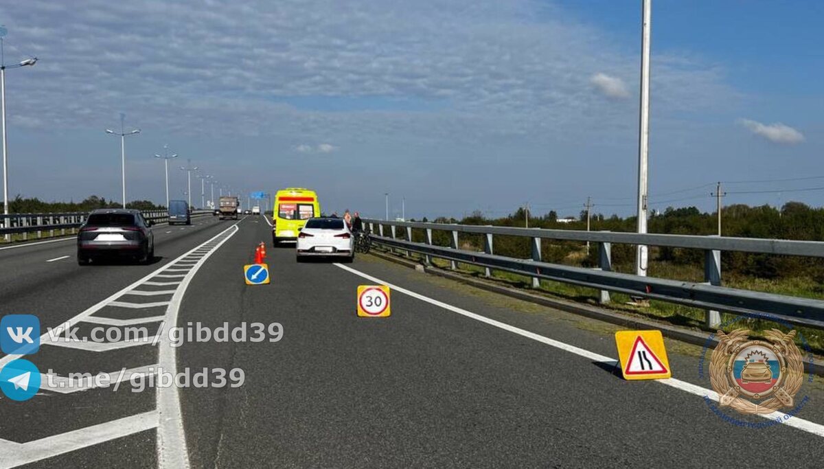 Гурьевский район 01.10.2025 года в 10:00 на 17 км + 500 м автомобильной дороги «Приморское полукольцо» Гурьевского района Калининградской области двигался автомобиль «Huyndai» под управлением 42-летнего водителя, при выезде со второстепенной дороги на разгонную полосу допустил наезд на 46-летнего велосипедиста, двигавшегося по «Приморскому полукольцу», в направлении от г. Калининграда в сторону г. Зеленоградска. ⚠️В результате ДТП велосипедист получил телесные повреждения. ❗️Причина аварии: Несоблюдение очередности проезда.
