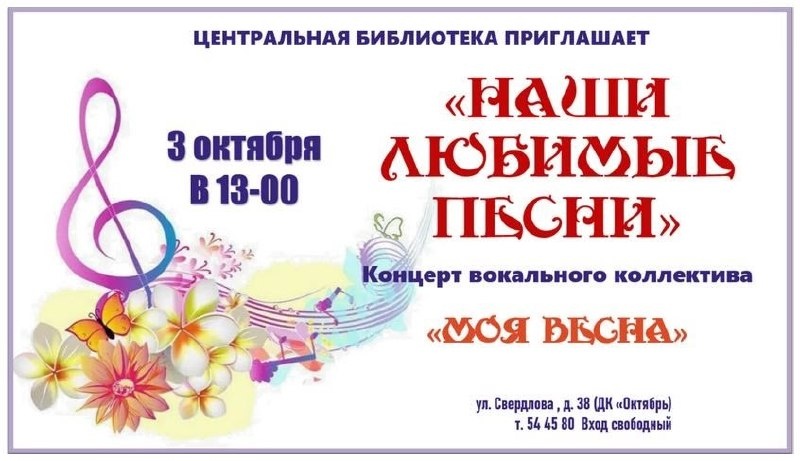 ✨ Концерт вокального коллектива "Моя весна" - "НАШИ ЛЮБИМЫЕ ПЕСНИ" Ждём Вас ♥️ 🚫 Возраст: 6+ 📆 03.10.2025 🕒 13:00 🏢 Центральная библиотека 📍 г. Подольск, ул. Свердлова, д. 38 💰 Вход свободный❗️ ⭐Поддержать канал голосом 💰 Вакансия - курьер в Подольске ✅ Мероприятия Подольск https://dzen.ru/id/66ed500f7b5671493eca3fd6 http://vk.com/podolsk_events http://dzen.ru/podolsk_events