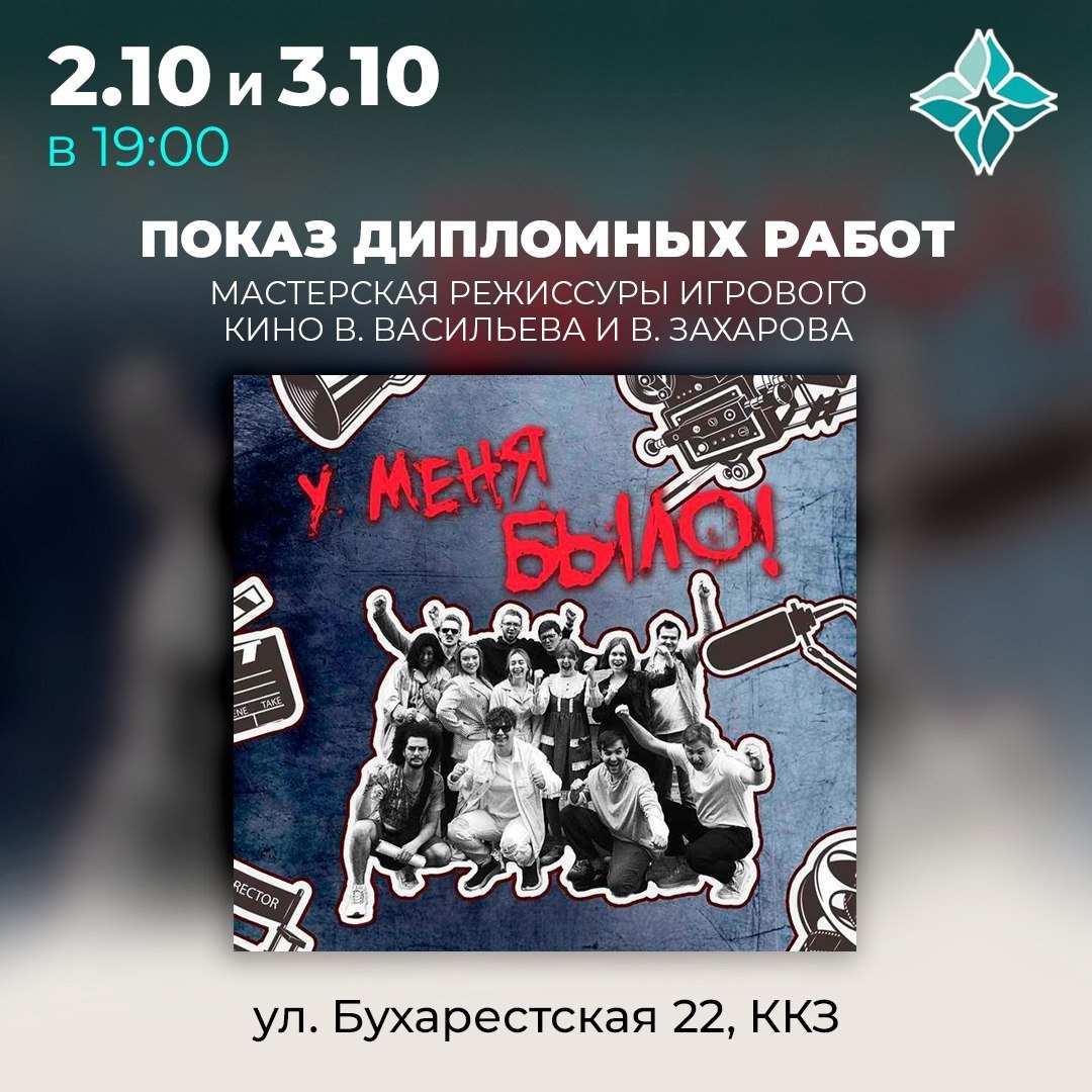 💥Будет уже сегодня! 🎞В ГИКИТ покажут дипломные работы мастерской режиссуры игрового кино Виктора Васильева и Валентина Захарова. В программу вошли девять фильмов выпускников 2025 года. ✅2 октября ✅19:00 ✅Бухарестская 22, ККЗ До встречи!