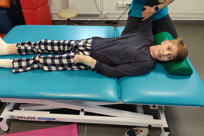 Подопечный нашего фонда «Движение вверх» – Матвей Турчинец – закончил курс реабилитации в РЦ «Преодоление» (г. Москва). И вот какими результатами по итогу курса поделилась мама Матвея: «Здравствуйте, уважаемые благотворители! Закончился наш курс реабилитации в центре “Преодоление”. Матвей достиг определенных успехов: все задачи, поставленные на начало курса, были выполнены. Матвей стал более уверенно самостоятельно сидеть, переворачиваться, практически без помощи он может подняться через левую сторону и сесть. Также в центре Матвею подобрали программу для альтернативной коммуникации. На одной из фотографий видно, как Матвей пытается коммуницировать с помощью этой программы. Сейчас у нас на очереди операция на правой стопе. И как только стопа будет прооперирована, нам можно будет начать уже ставить Матвея на ноги, в какие-то опоры для стояния, то есть уже учить его ходить потихоньку. Мы благодарим всех, кто помог организовать этот сбор и всех, кто принял участие в сборе для моего сына.