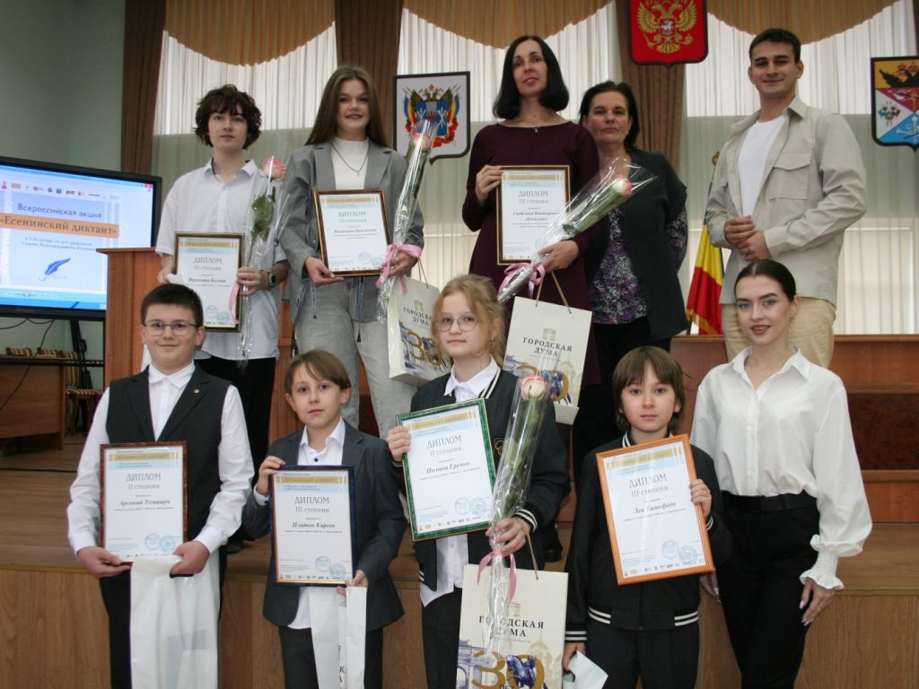 Учеников с 5 по 11 классы новочеркасских школ – призеров «Есенинского диктанта» — наградили дипломами и памятными подарками в городской Думе.