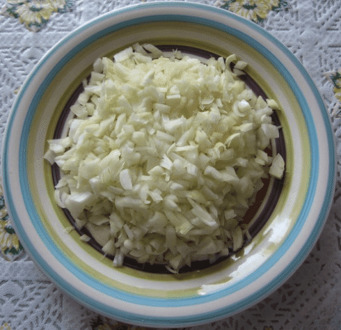 - Лук с морковкой очищаю, промываю и измельчаю. Лук - кубиками, морковь - на крупной терке.