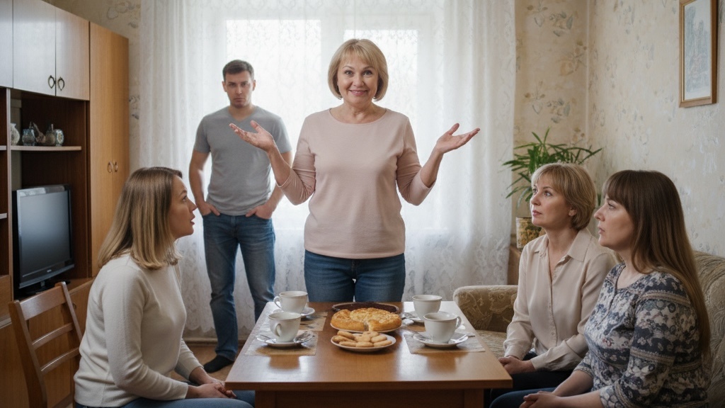 А через неделю, в воскресенье, когда они приехали к свекрови на обед, грянул гром. Светлана Павловна встретила их на пороге, сияя, как начищенный самовар. За столом уже сидели три ее подруги — та самая тетя Люда, и еще две незнакомые Марине дамы.