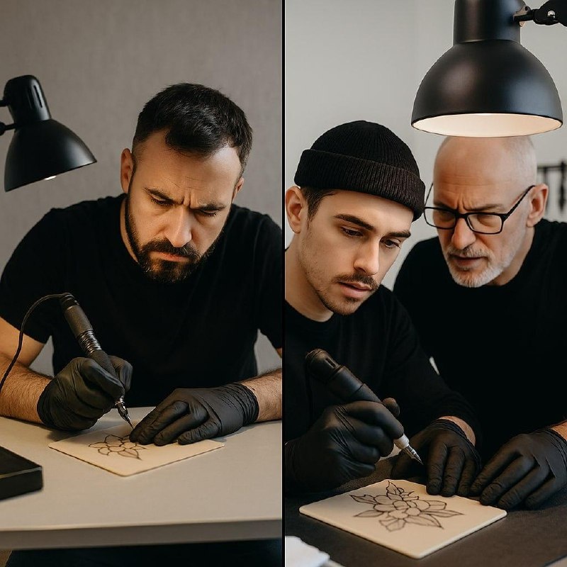 В тату-мире есть два лагеря. 🔹 Самоучки — Начинали в гараже или на кухне. — Учили всё на своих ошибках. — Каждый шрам на клиенте — это урок. — Гордятся: «Я сам пробился, без учителей». Плюсы: дикая практика, уникальный стиль, закалка в реальных условиях. Минусы: куча факапов, долгий путь, иногда — кривые привычки, которые потом сложно ломать. 🔹 «Школьники» — Прошли курсы у топ-мастера или в академии. — С самого старта знают про стерильность, оборудование, базу. — Меньше ошибок на старте. Плюсы: экономия времени, быстрый рост, правильные основы. Минусы: иногда — одинаковый стиль у всех выпускников, меньше «дикого» креатива. Но есть тут большая разница. У первых есть дикое желание и стремление. Они не воспитаны в тепличных условиях, они зачастую приходят в профессию не из за денег, и как правило уже неплохо рисуют ( но это не точно). А вот со вторыми дела несколько сложнее. В школы под влиянием маркетинга ( где все говорят, что зарабатывать на тату проще простого) попадают сове