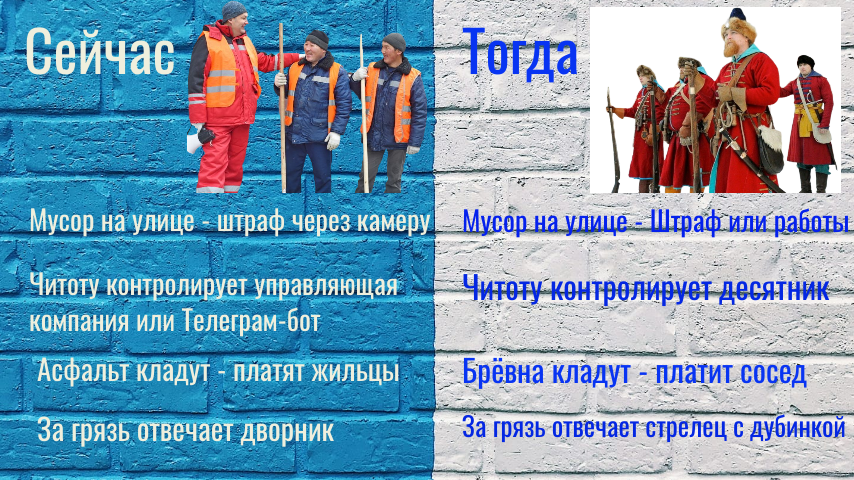 Глава 1. Улицы Москвы в XVIII веке. Грязь по колено и запах истори. Вы гуляете по Москве. Под ногами не асфальт, а болото. Грязи по щиколотку. А то и по колено. По сторонам — деревянные дома, козы, торговцы, лужи и… ну, скажем так, естественные отходы. Иностранцы того времени писали: «По московским улицам невозможно ходить — сплошная жижа и вонь!» Знакомо? Только вместо коз — собаки, вместо луж — ямы после ремонта, а вместо «невозможно ходить» — «ну куда опять делся этот асфальт?!». Но тогда всё это надоело не только иностранцам, но и самому императору. И вот однажды Пётр I сказал: «Хватит!» — и началась первая в истории России реформа ЖКХ. Сегодня у нас есть дворники, мусоровозы и приложения для вызова сантехника. А при Петре I за чистоту отвечали… стрельцы. Да-да, те самые, которых потом расстреляли. Но в 1700-х они ещё ходили по улицам с палками и кричали: «Эй, ты! Не бросай помёт!» Не «помёт» в смысле бумаги, а в смысле... ну, вы поняли. Выбрасывать навоз, отходы, помои на улицу бы