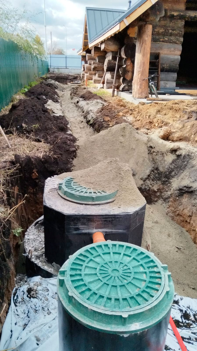 Грунт — глина, песок, скальник. УГВ — очень высокий. Поэтому установлена система ПРО — принудительный сброс очищенного стока в дренажный колодец.