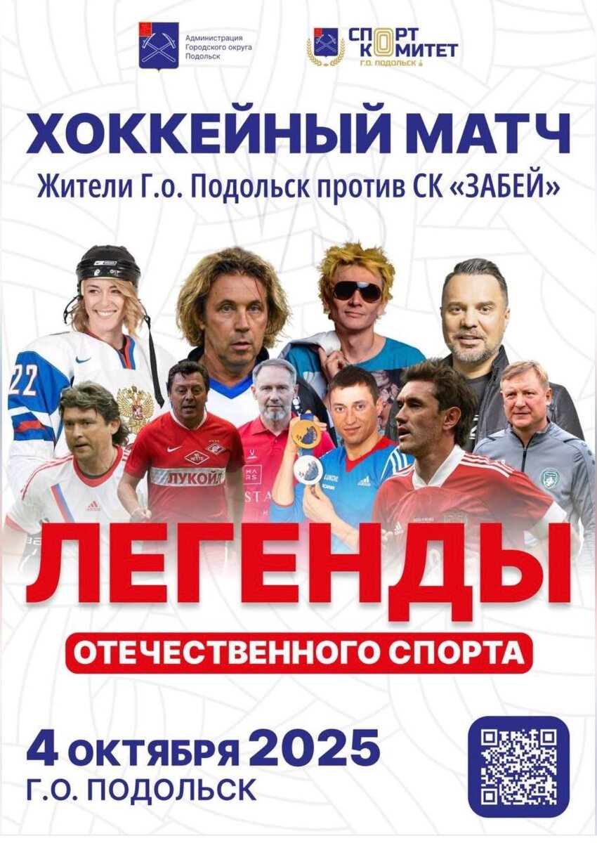 ✨ Суперматч - Звёзды российского футбола против подольских хоккеистов ⚽️🏑Александр Мостовой, Валерий Шмаров, Дмитрий Ананко, Владимир Бесчастных, Юрий Жирков, Александр Легков, Владимир Маминов, Руслан Осташко, Гарик Богомазов, Зоя Полунина, Виктор Зинчук, Вадим Ананьев, Ромарио. 🎤Также будет шоу-программа и выступление артистов. 🚫 Возраст: 0+ 📆 04.10.2025 🕒 11:00 🏢 ЛЕДОВЫЙ ДВОРЕЦ «ВИТЯЗЬ» 📍 г. Подольск, ул. Кирова, д. 63а 💰 Вход свободный❗️ ⭐Поддержать канал голосом 💰 Вакансия - курьер в Подольске ✅ Мероприятия Подольск https://dzen.ru/id/66ed500f7b5671493eca3fd6 http://vk.com/podolsk_events http://dzen.ru/podolsk_events