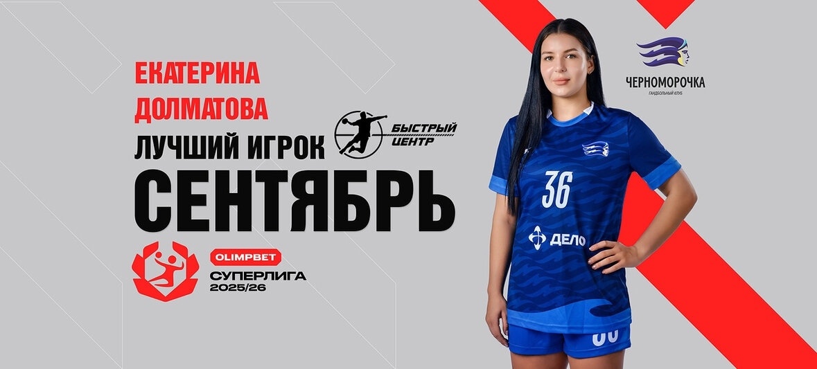 Лучшей гандболисткой сентября по версии БЦ признана разыгрывающая "Черноморочки" Екатерина Долматова. Она получила 40% голосов жюри. За две сентябрьских игры Долматова забросила 21 мяч.