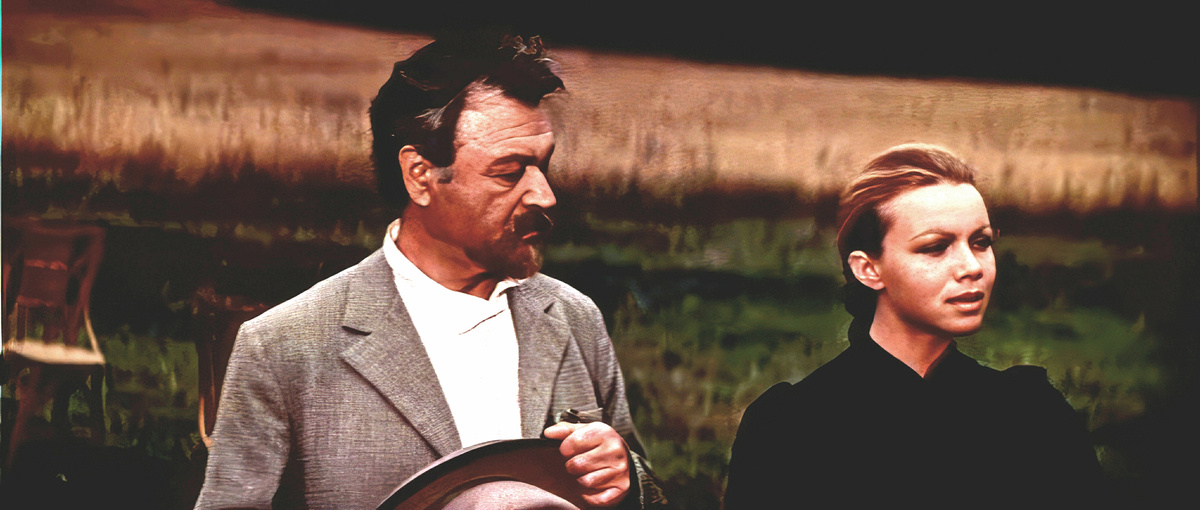 А вот доктор Дорн в гениальном исполнении Ефима Захарыча Копеляна - никого не любит. Ему 55 лет, он уже своё отлюбил и отгулял. А погулял много, разнообразно и со вкусом. Местные помещицы, их дочери, да и другие попадавшиеся ему на жизненном пути дамы, так и падали, так и падали вслед за ним, и сами складывались в штабеля. Ведь видно же, что умница, красавец, и к тому же очень доброжелательный человек. Ну, имеется у него маленькая интрижка с Полиной, но она такая, ни к чему его не обязывающая.