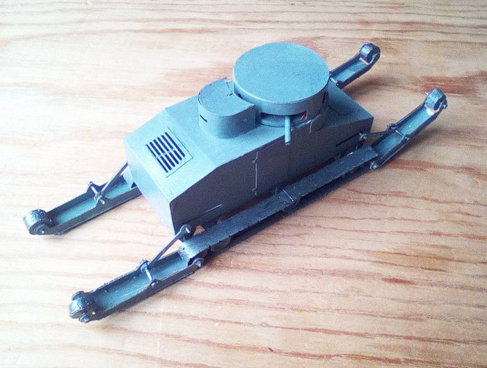 Как вы уже знаете из предыдущей части, я изрядно затормозился на простейшем шасси танка. Как ни старался, всё время какаято фигня получалась. Наконец собрал более менее приличный вариант. К сожалению кадры сборки случайно удалились. Поэтому даю финальный вариант. В полной готовности к подвигам. Как там было в очень старом анекдоте: Чапай забивал гвоздь и ударил себя по пальцу - ах ты семиголовый восьмих...член - сказал Василий Иванович после чего грязно выругался. В условиях близких к боевым. Да. Судя по всему в боевой обстановке машина должна была ехать вправо. Сравнение с "Вездеходом". Как мне верно заметили, в машине Бурштыня почти не предусмотрено место для двигателя. Здесь это очень заметно. Действительно машина слишком маленькая. Два разных подхода к преодолению заграждений противника. Предполагаемое вооружение машины Бурштыня, 53мм пушка "Грузон". Лёгкая пехотная скорострельная пушка, которая так-же устанавливалась в башни в каретки Шумана. Так-же производства "Грузон Верке". И