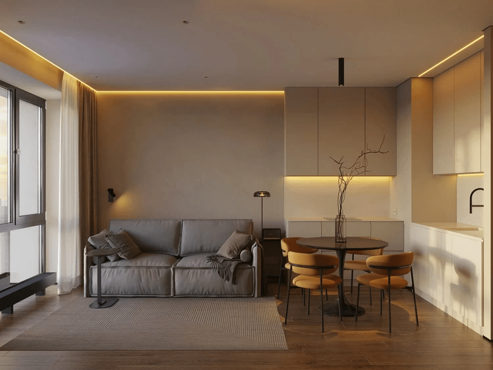 Такое сочетание делает интерьер живым, гибким и позволяет легко менять атмосферу в зависимости от задач.