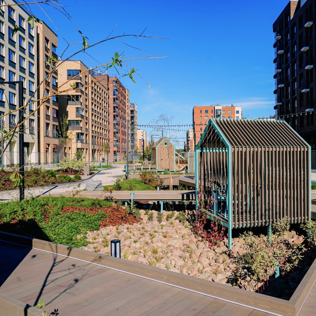 В октябре белых ночей в NEWПИТЕР станет больше: открыт новый этап бульвара Бульвар Белых ночей – центр притяжения жителей всего Новоселья. Здесь можно проводить время с детьми, встречаться с друзьями или просто гулять. Новая часть – это детские и спортивные площадки, дождевой сад, площадка с гамаком и площадь с ручьем. Развитие бульвара продолжится в сторону 3 и 4 лотов, где в будущем появятся памп-трек, скейт-площадка, зона кроссфита, площадка для дрессировки собак, живописная дубовая аллея и площадь с амфитеатром. После завершения всех этапов строительства протяженность бульвара составит более 3 километров. Концепция второго этапа, разработанного архитектурным бюро Semrén & Månsson, стала победителем премии Green Property Awards 2024 в номинации «Общественные пространства и сооружения». Кроме того, бульвар входит в ТОП-30 лучших проектов общественных пространств страны по версии издания «Проект Россия». Приглашаем жителей Новоселья на прогулку!