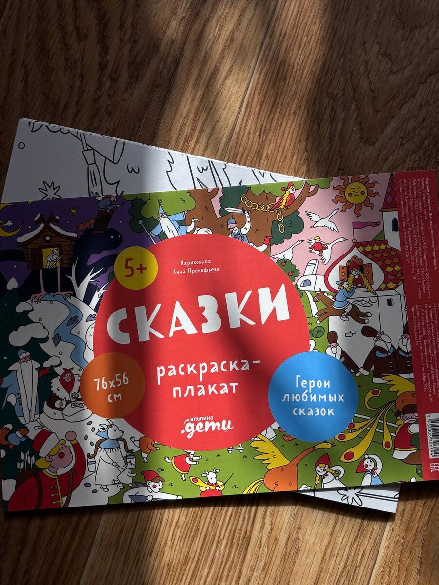 Сказки. Раскраска-плакат от Альпина.Дети забрала на днях эту прелесть, решила порадовать Руслана после сна, проснется и увидит такую классную раскраску. уже покупали похожие, заходит на ура, даже умудряется придумывать новые идеи использования этой раскраски. особенно радуют герои любимых сказок, можно поиграть в "угадай из какой сказки?", а еще пупс будет точно занят творчеством на 20-30 минут. 🩷
