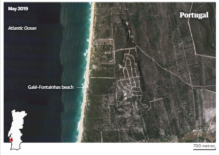 Arena сообщает, что в Португалии почти 300 гектаров (740 акров) охраняемых песчаных дюн на пляже Гале недалеко от Мелидеса, в часе езды к югу от Лиссабона, были утрачены для создания нового поля для гольфа в CostaTerra Golf and Ocean Club, где недвижимость будет продаваться по цене около 5,6 млн фунтов стерлингов.