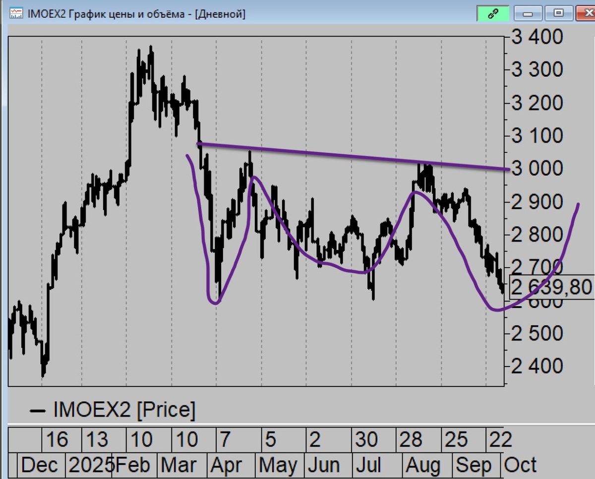 Насчёт классического уровня на рынке 2600 по ММВБ о котором вам тут пишут уже очень долго и начали писать уже очень давно. Обратите внимание, что летние лои чуть выше весенних. Т.е. формально если мы кольнём 2600 то можем даже Бэтмана на рост нарисовать и отправиться в совсем светлое будущее с суперростом. ☝️Почему мне тогда этого не хочется. Потому что паттерн будет не дорисован на 2600 а будут просто намётки на него, а в таких случаях часто "что-то может пойти не так". У крупняка появятся соблазны посрывать стопы в бумажках у толпы, устроить маржинколы небольшие и пробой уровня ещё непонятно чем закончится. При этом если туда упадём скорее всего будем его колоть. Так что по прежнему хочется чтобы развернули повыше. И тихо спокойно перейти к обычному среднестатистическому росту :) Посмотрим что там будет на рынке.