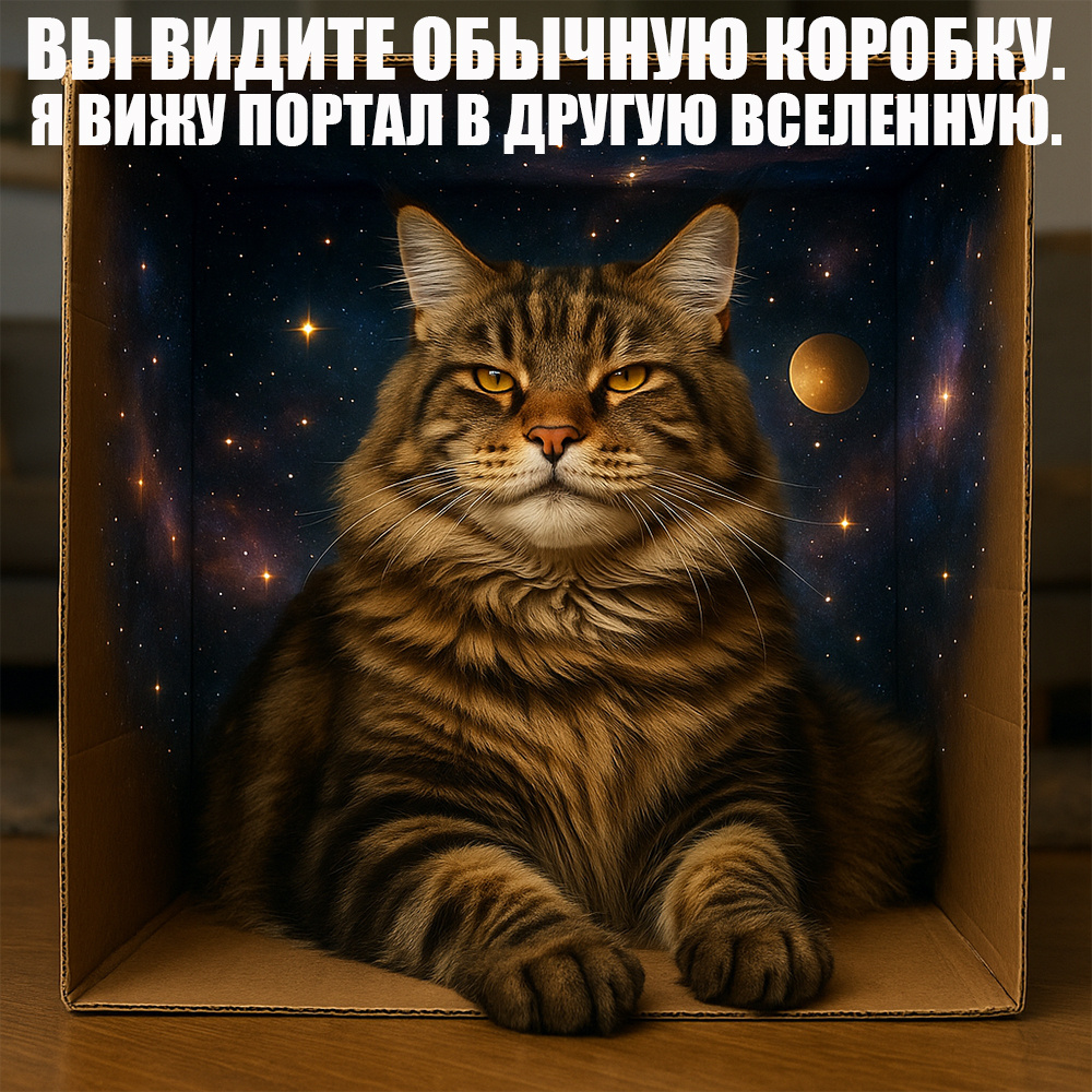 И вот четыре ситуации, которые кожаные видят как банальность, а мы — как смысл. 😼 Куня — Коробка как портал.