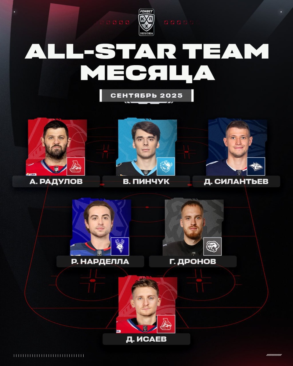 Форвард минского "Динамо" Виталий Пинчук вошел в сборную сентября по итогам первого месяца сезона КХЛ Он провел 9 матчей и набрал 10 очков (4+6). Читайте Sputnik Беларусь в MAX