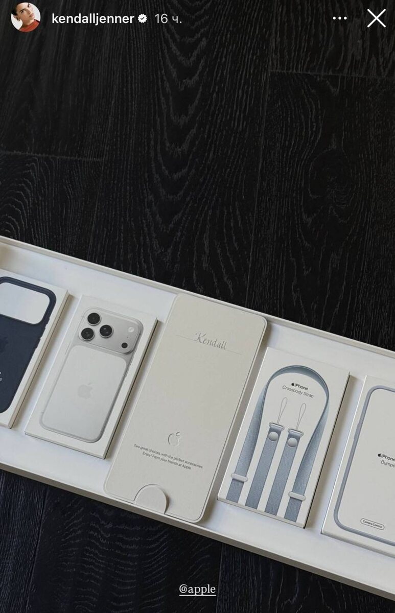 Кендалл Дженнер получила именную коробку Apple с новым iPhone и аксессуарами — и поделилась распаковкой.