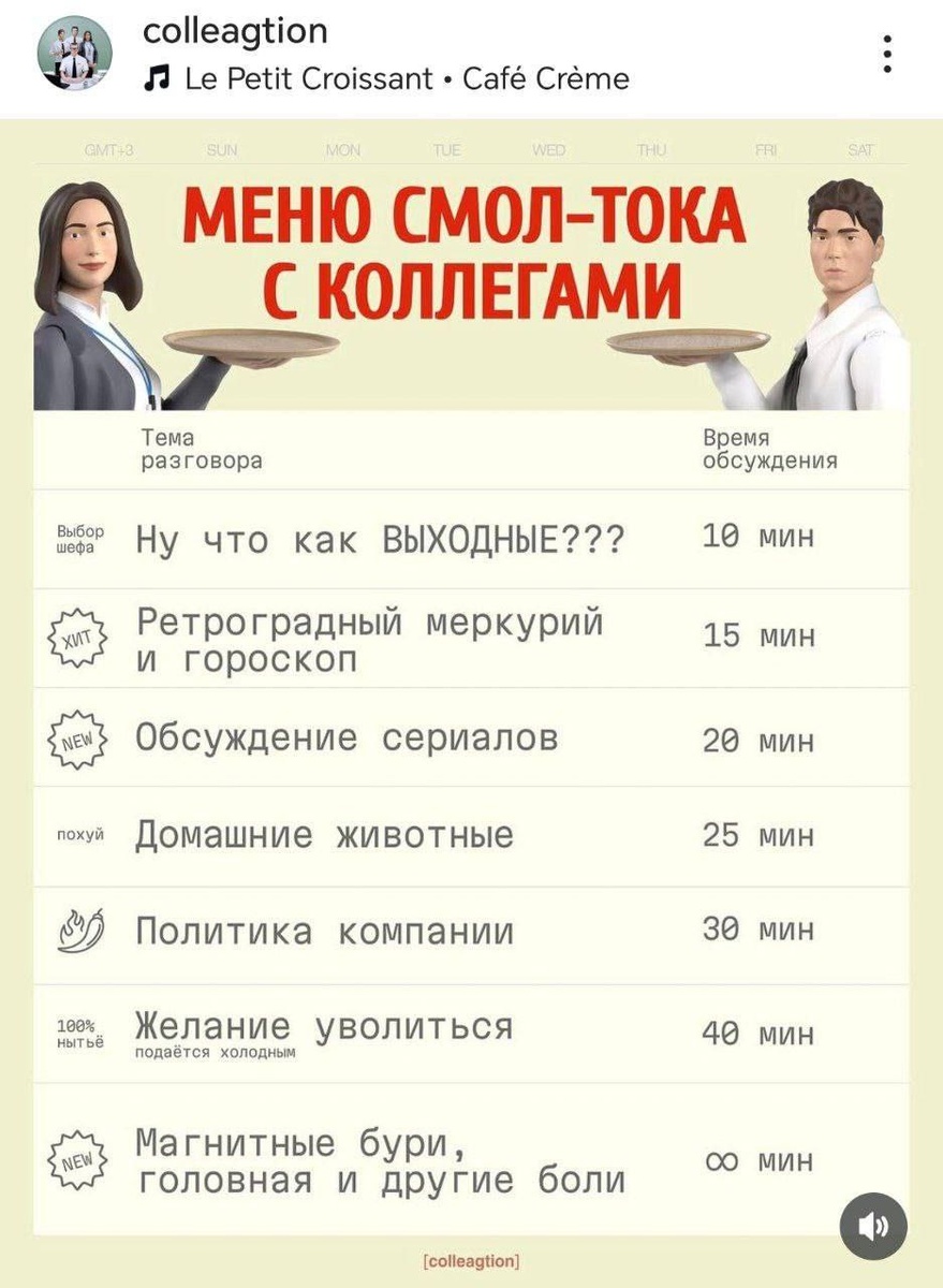 Меню смол-тока с коллегами. Для тех, кто не знает, как скоротать время на работе.