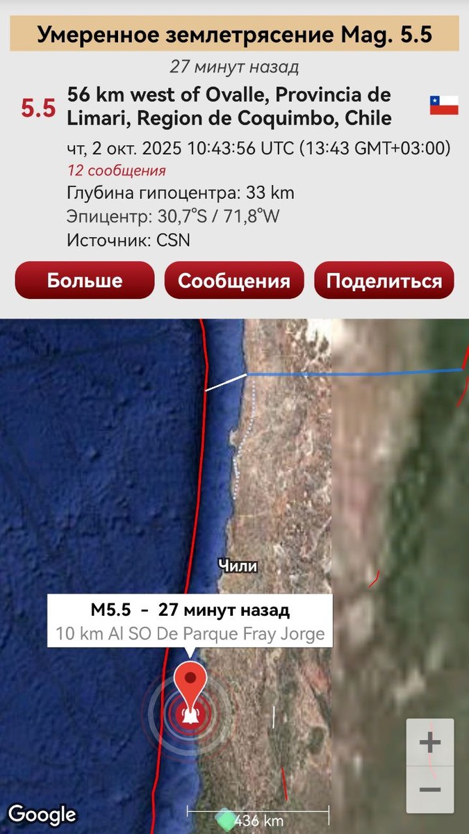 Пока что прозвучало ощутимое М5.5, но весьма вероятно продолжение посильнее (до М7.5+) в течение 9 дней.