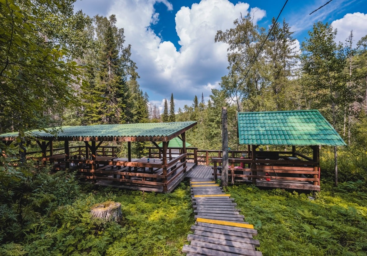 Напомним, лагерь расположен в научно-познавательном комплексе «Нарым». Внутри есть деревянные настилы для палаток, летняя кухня, столы и беседки.
