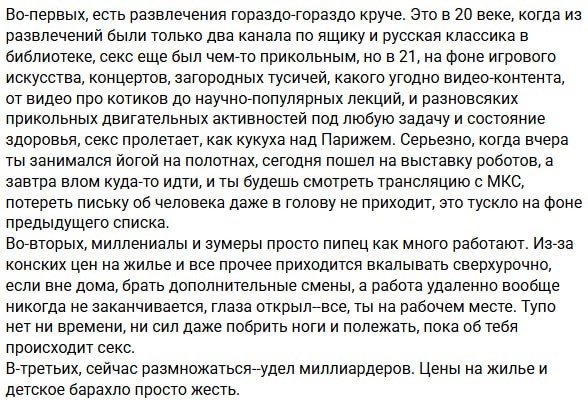 Из обсуждения, почему молодежи не интересен секс.