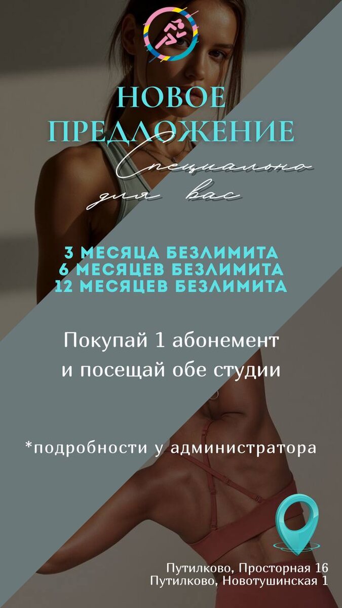 Абонементы: 🎀 3 месяца безлимита 🎀 6 месяцев безлимита 🎀 12 месяцев безлимита При покупке любого из этих абонементов по полной стоимости вы можете посещать сразу 2 студии: 📍Новотушинская 1 📍Просторная 16