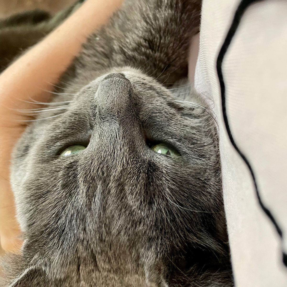 Спать с Няшей, конечно, хорошо. С одной стороны. Когда холодно. Она кошка большая пушистая, теплая. Можно даже обогреватель не включать и использовать серое пушистое тело как грелку.
