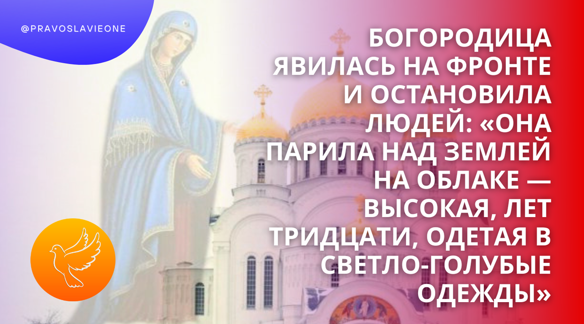 Богородица явилась на фронте и остановила людей: «Она парила над землей на облаке — высокая, лет тридцати, одетая в светло-голубые одежды»