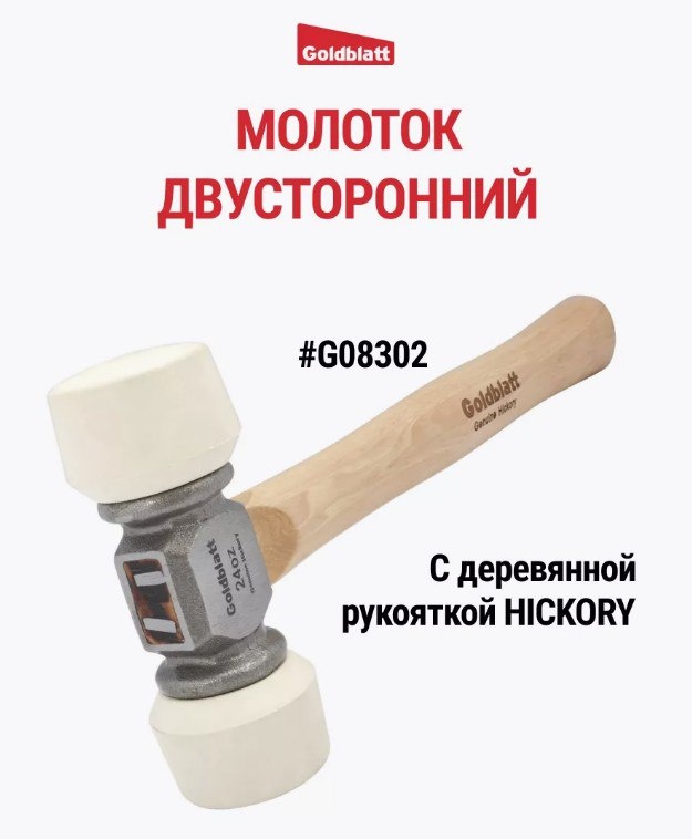 Двусторонний резиновый молоток GOLDBLATT. Недавно засветился в наших роликах в компании с мостами, многие о нём спрашивали ⤵️ Подходит для многих видов работ: столярных, рихтовочных, сборки мебели, укладки плитки. ▪️Два бойка из белой резины сводят к минимуму случайное повреждение рабочей поверхности ▪️Прочное металлическое основание ▪️Деревянная рукоятка из гикори (орех) ▪️Вес: 680 г Артикул — G08302, РРЦ — 2716 ₽
