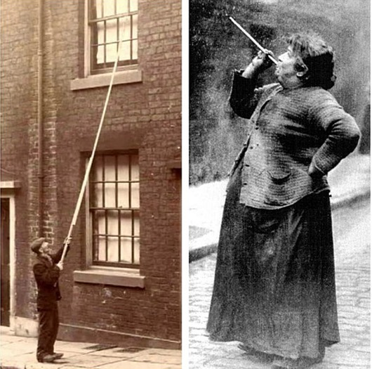 Эти люди ходили по улицам рано утром и будили клиентов, стуча в окна длинными палками или трубками с горохом. Услуга была настолько востребованной, что у будильщиков появлялись постоянные клиенты, а работа передавалась по наследству. Некоторые использовали даже бамбуковые палки длиной до трёх метров, чтобы достучаться до верхних этажей.
