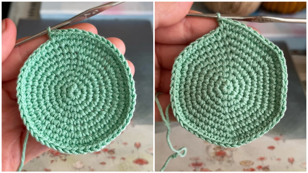 Чтобы создать круглую деталь (например, голову игрушки), мы вяжем ряды с прибавками. И если вязать прибавку над прибавкой предыдущего ряда, у нас в итоге получается шестиугольник. Чтобы этого избежать, в начале каждого ряда (начиная с 5-го) мы провязываем лишний столбик смещения и не считаем его. Первые 4 ряда вяжем как обычно. 1 ряд: набираем 6 сбн в кольцо 2 ряд: (прибавка)х6 (12) 3 ряд: (1 сбн, пр)х6 (18) 4 ряд: (2 сбн, пр)х6 (24) Далее по схеме мы должны провязать 3 сбн, но мы провязываем 4 сбн. 5 ряд: 1 сбн (здесь и далее не считаем), (3 сбн, пр)х6 (30) 6 ряд: 1 сбн, (4 сбн, пр)х6 (36) 7 ряд: 1 сбн, (5 сбн, пр)х6 (42) 8 ряд: 1 сбн, (6 сбн, пр)х6 (48) 9 ряд: 1 сбн, (7 сбн, пр)х6 (54) В результате край детали получается ровнее. Приятного вязания! #вязаниекрючком #вязаныеигрушки #учимсявязать #лайфхакивязания #урокивязания #вязаныеигрушки #рукоделие #ручнаяработа #творчество