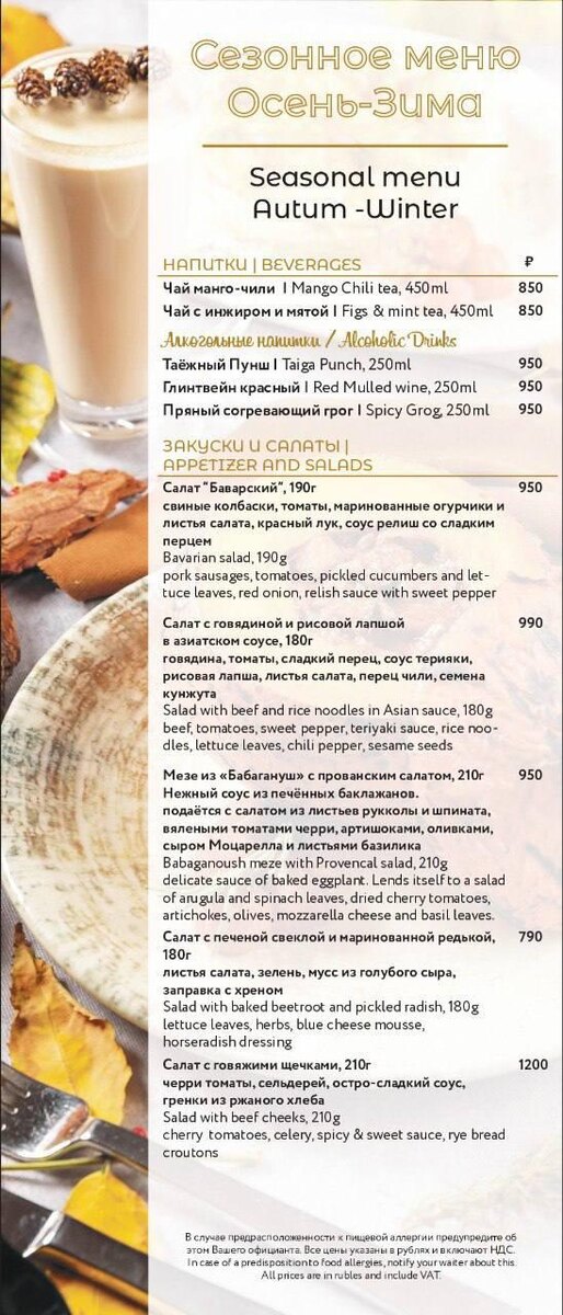 Звёзды Арбата Отель и Апартаменты представил осенне-зимнее меню: согревающие чаи, глинтвейн и пряный грог, сытные салаты, супы из лесных грибов и венские вафли с морепродуктами или утиным конфи.