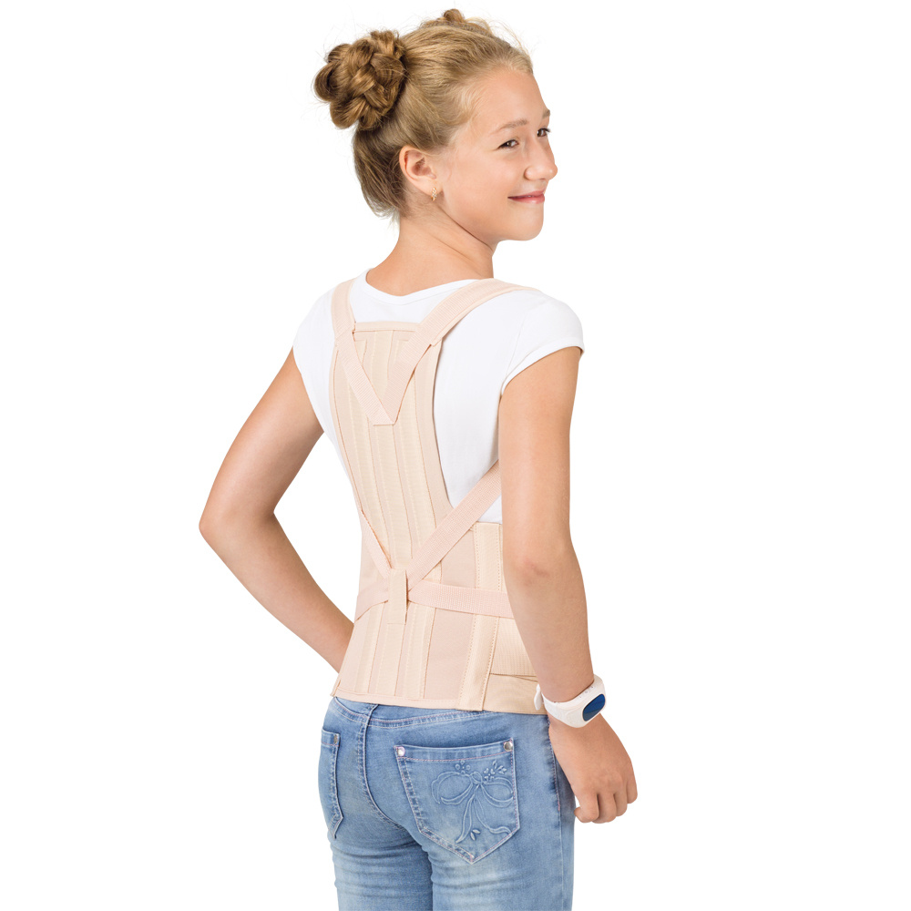 Эффективная поддержка позвоночника строится на трех основных принципах: ✅укрепление мышечного корсета (ЛФК) ✅разумный режим нагрузок ✅при необходимости, корректное ортезирование для разгрузки и формирования правильной осанки. Правильно подобранный ортез — решение, которое будет комфортным и эффективным для ребенка. 1. Для выработки привычки держать спину ровно Если нужно мягко напоминать об осанке и предотвратить проблему на раннем этапе, отлично подойдет Корректор осанки ORTO КО-102. 👉 Он действует как «напоминатель»: при сутулости чувствуется легкое давление на плечи, что помогает сразу расправить спину. 👉 Он незаметен под одеждой и не сковывает движения,