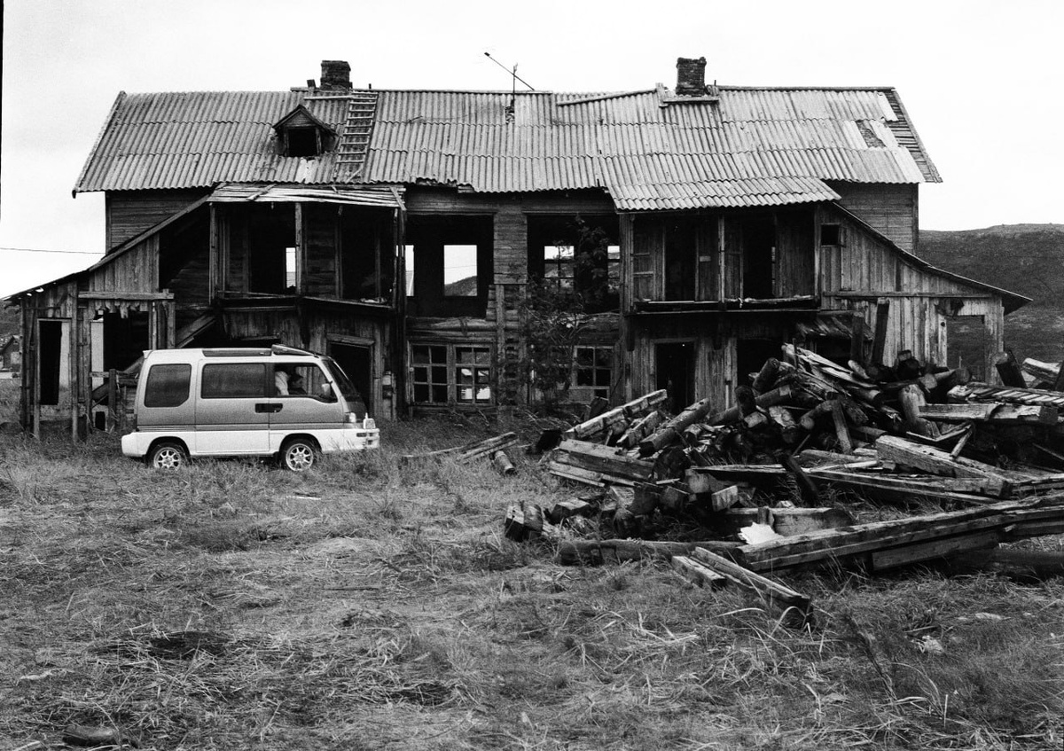 Это Териберка, старые рыбацкие дома, их там несколько, типовых, в разной степени обветшалости, некоторые сгоревшие