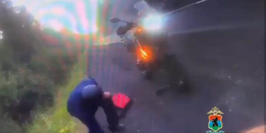 Загоревшийся в Прионежье мотоцикл помогли потушить дорожные полицейские