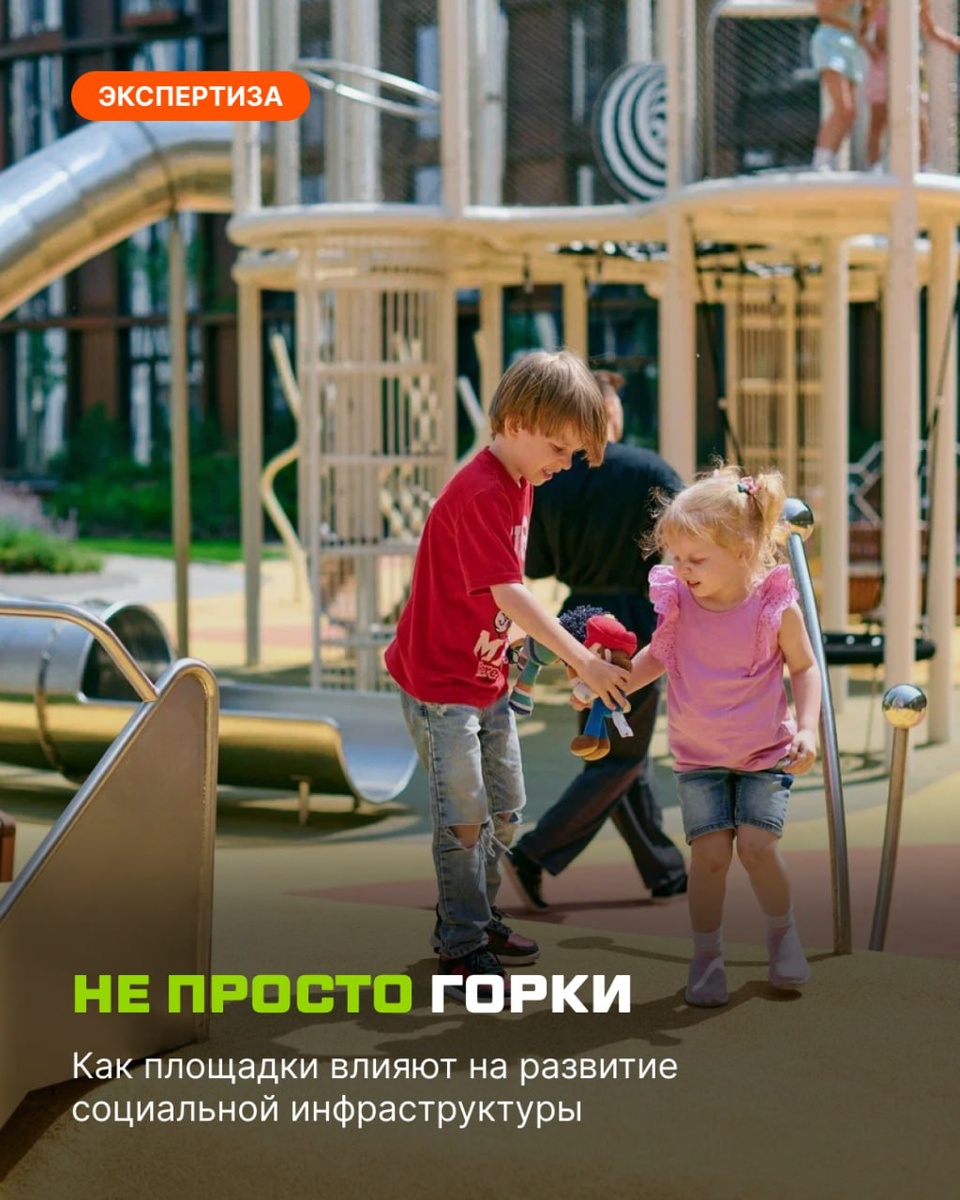 Современная детская площадка — это стратегический объект городской инфраструктуры. Её влияние выходит далеко за рамки детского досуга, формируя среду, привлекательную для жизни семей. Почему хорошая площадка — это гораздо больше, чем кажется, и как она меняет жизнь всего района? ➡️ Точка притяжения сообществ Пока дети играют, взрослые знакомятся, общаются, формируют соседские связи. Повышается социальный капитал района: люди перестают быть просто соседями по подъезду, становятся сообществом. ➡️ Катализатор развития смежной инфраструктуры Современная площадка, ставшая местом притяжения, создаёт мощный рыночный стимул. Бизнес закономерно стремится туда, где концентрируется аудитория, формируя спрос на инфраструктуру, сервисы и благоустройство. ➡️ Повышение привлекательности района Благоустроенные дворы с современными игровыми комплексами — значимый фактор для семей при выборе места жительства. Это повышает привлекательность и стоимость квартир в районе. ➡️ Снижение нагрузки на с