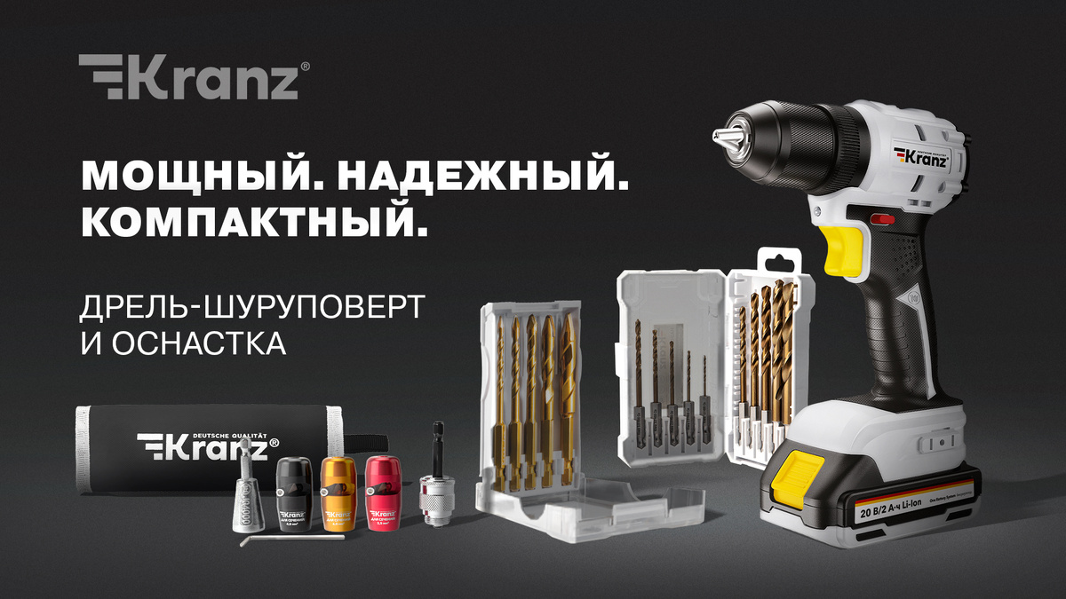 Решения KRANZ помогают выполнять задачи любой сложности — от монтажа мебели до сверления металлоконструкций. Сочетание мощной дрели-шуруповерта с качественной оснасткой превращает привычный инструмент в универсального помощника для дома, мастерской и профессиональной стройки.