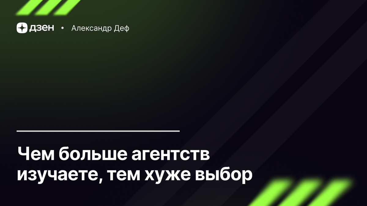Вы открываете десять вкладок с агентствами, изучаете портфолио, сравниваете цены. По идее, чем больше вариантов, тем точнее выбор. Но через неделю картина не проясняется — критерии размылись, а решение так же далеко. Это «паралич выбора»: мозг перегружен альтернативами и отказывается принимать решение. Наш мозг эффективно сравнивает максимум 5-9 вариантов одновременно. Дальше качество анализа падает, хотя времени уходит всё больше. Оптимальное количество для качественного решения — 7±2 варианта Мета-анализ полусотни исследований показал: чем больше вариантов рассматривали люди, тем чаще жалели о выборе. Директор производственной компании ищет подрядчика на сайт за 800 тысяч: первую неделю находит 47 агентств, вторую — запрашивает 23 сметы, третью — сравнивает портфолио. К концу месяца критерии размыты, решения нет. Проблема не в сложности проектов, а в попытке найти идеальный вариант среди десятков похожих. Максимизаторы ищут самый лучший вариант, сатисфайзеры — достаточно хороший. О