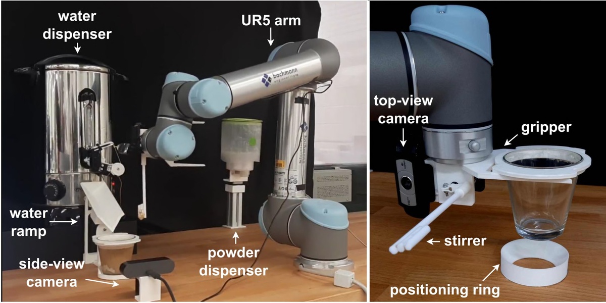 В итоге получился необычный проект, который уже дал интересный результат: робот перебирает разные способы приготовления, компьютерное зрение оценивает получившуюся пенку и на основе этой оценки формирует следующие настройки эксперимента. Настраиваемые параметры приготовления капучино достаточно просты: высота, с которой наливается вода, а также время и скорость размешивания.
