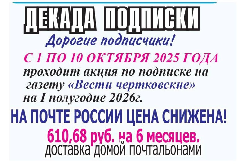 Дорогие подписчики! Только 10 дней у вас есть возможность продлить подписку на районку у почтальонов района по сниженной цене