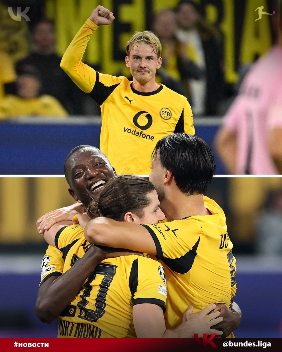 😃 Дортмундская «Боруссия» при домашних трибунах победила «Атлетик» из Бильбао со счётом 4:1 в матче 2-го тура общего этапа Лиги чемпионов сезона 2025/2026 🏆 У «Боруссии» отличились Свенссон, Чуквуэмека, Гирасси и Брандт. Единственный гол «Атлетика» забил Горка Гурусета. ⚡️ Дортмундская команда в 3-м туре ЛЧ сыграет против «Копенгагена» (21 октября), клуб из Бильбао 22 октября примет «Карабах». 🏆 Это Бундеслига, брат! #Бундеслига